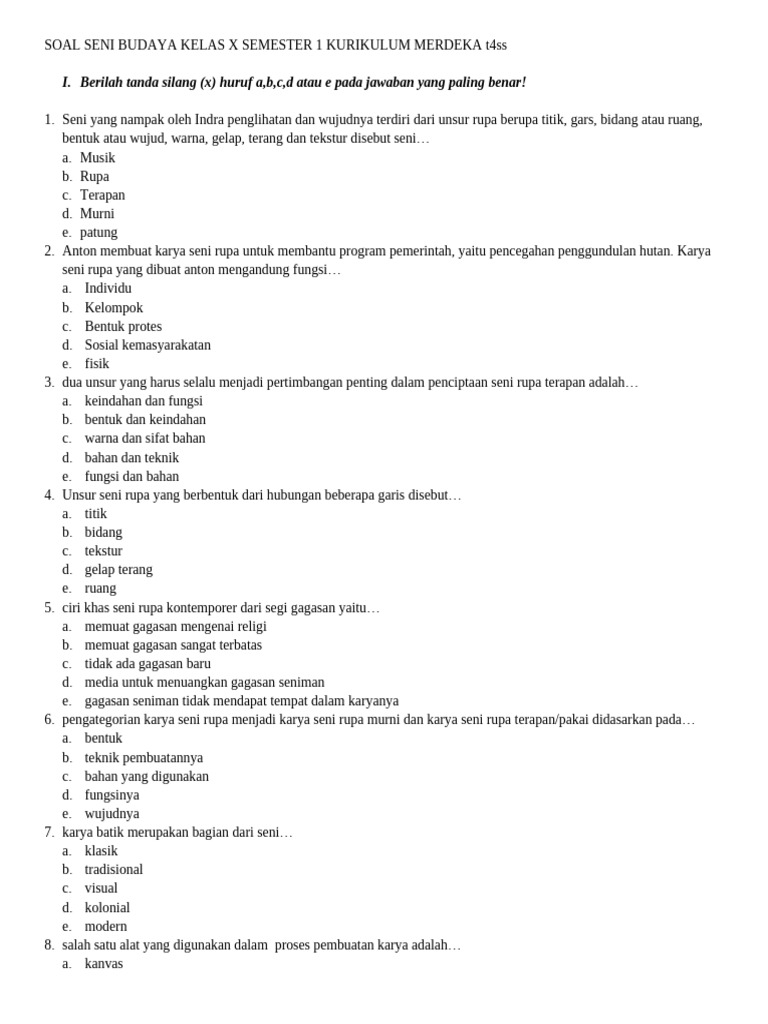 Untuk membantu siswa mempersiapkan diri dalam menghadapi penilaian akhir semester, pemahaman terhadap tipe-tipe soal yang mungkin muncul sangatlah penting. Artikel ini akan menyajikan contoh-contoh soal Seni Budaya Kelas X Semester 1 Kurikulum 2013, mencakup berbagai aspek materi yang umum diajarkan, beserta penjelasan singkat untuk memperkaya pemahaman. Dengan jumlah kata yang ditargetkan, kita akan mengupas lebih dalam berbagai tipe soal, mulai dari pilihan ganda, isian singkat, hingga uraian, yang mencerminkan kedalaman materi dan kemampuan analisis yang diharapkan dari siswa.