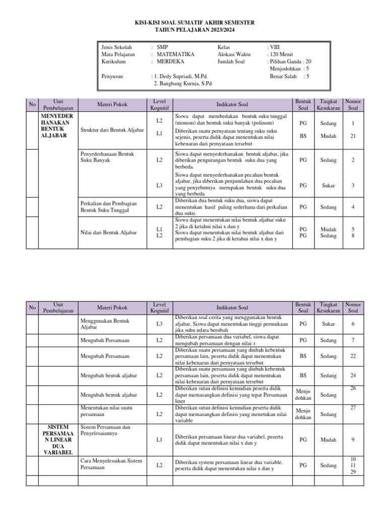 2. Variasi Bentuk Soal: Kisi-kisi ini mencakup berbagai bentuk soal: